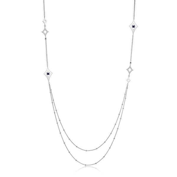 ELLE “Stellar” Double Layer Station Long Necklace with Sapphire – Silver