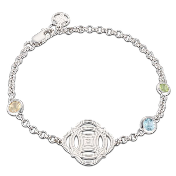 ELLE Sterling Silver DESTINY Blue Topaz Citrine and Peridot Bracelet Size 7.5 – Silver