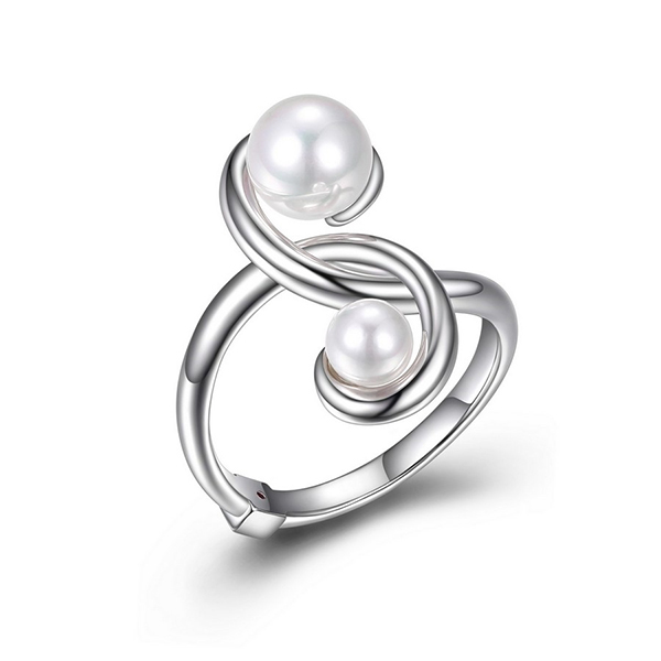 Product Name: ELLE Sterling Silver PEARLS White Shell Pearl Bypass Ring Product Type: Bypass Ring Ring Size : 6 Stone Size : 7mm Materials: Sterling Silver , Pearl Color: Silver and White