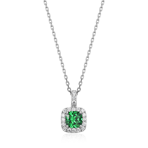 ELLE Sterling Silver RADIANCE 6mm Cushion Green Zirconia Halo Necklace Size 17 – Silver