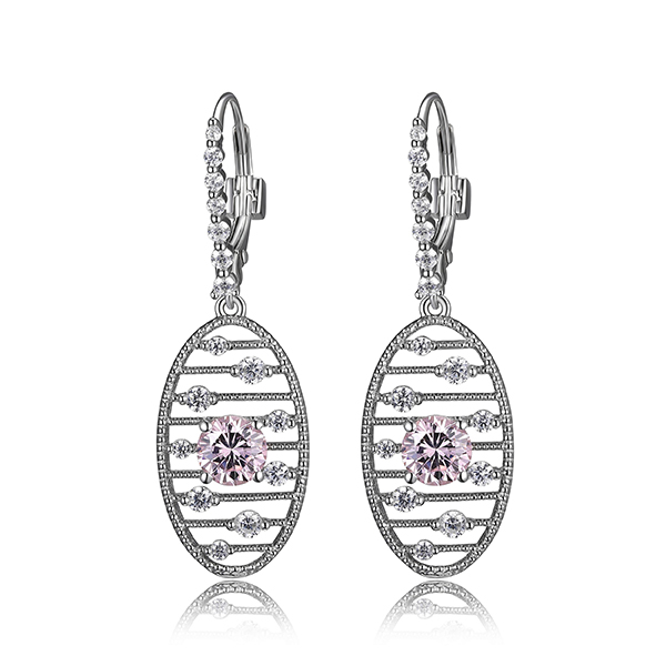Product Name: ELLE Sterling Silver STARBURST Clear And Pink Cubic Zirconia Oval Dangle Leverback Earrings Product Type: Leverback Oval Dangle Earrings Size: 5.5mm Materials: Sterling Silver, Cubic Zirconia Color: Silver, Pink