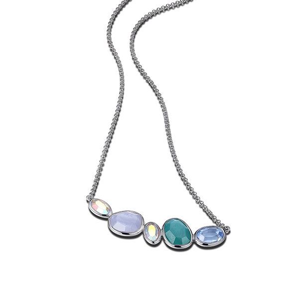 MODEL: NR0LB4K-WElevate your style with the ELLE Sugar Melon Multi-Gem Necklace in gleaming Sterling Silver Rhodium Plated. This exquisite piece features genuine Green Quartz, Blue Lace Agate, Blue Quartz, and sparkling Crystal stones, perfectly sized at 12x9mm and 10x7mm, on a versatile 16+2 inch chain. Experience confident elegance and receive compliments with this unique, tarnish resistant accessory that adds a sophisticated touch to any look.