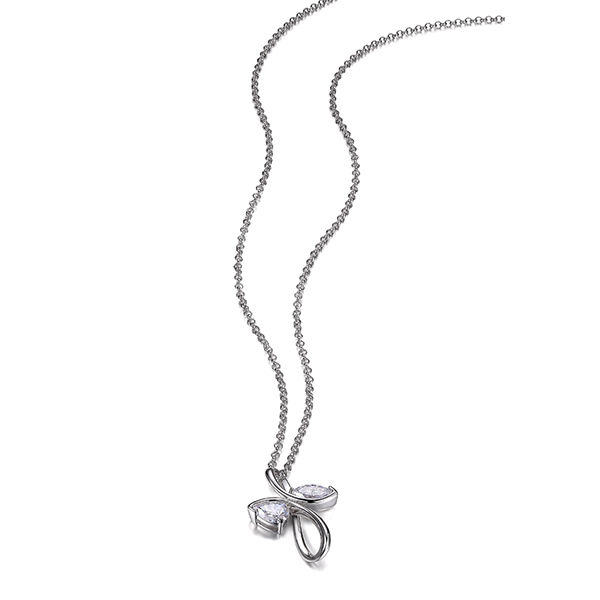 ELLE Toi Et Moi Cubic Zirconia Bypass Necklace – Silver