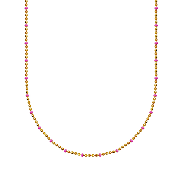 MODEL: NS0BDS202-YPink enamel bead chain necklace in sterling silver with 18K gold plating. Length 15″ +3″. Made In Italy. Gift box included.