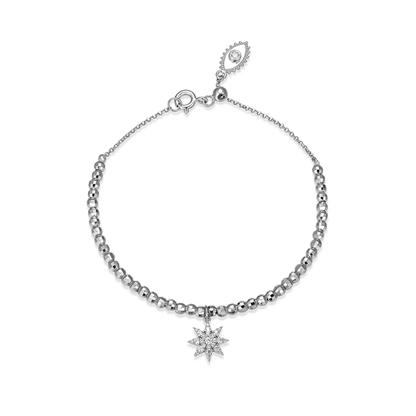 MODEL: BR1ABRG-WGoddess diamondlite cubic zirconia star charm adjustable bead bracelet in sterling silver. 7.5″ length. Gift box included.