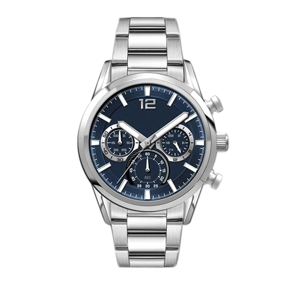 Stainless steel case ( diameter 42mm) 10 ATM water resistant transfer tape indexes dial Japan Miyota OS20/ FS20 chrono date movement Wrapped edge SS Band