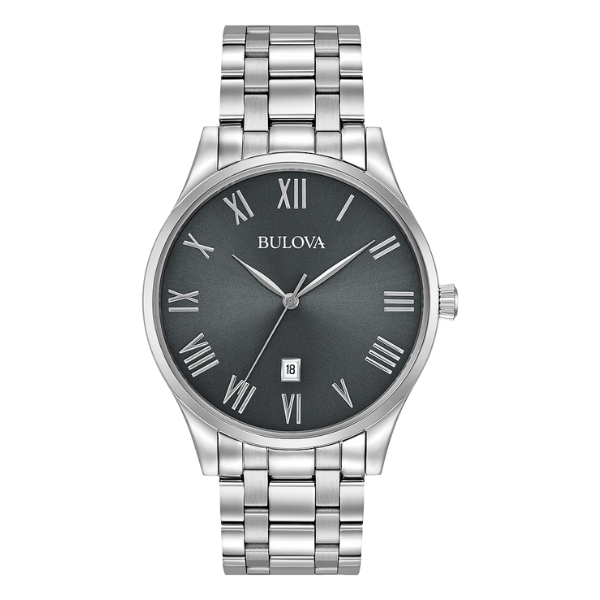 Product Name: Bulova 96B261 Classic Men Watch Band Material: Stainless Steel Band Type: Bracelet Clasp Type: Deployment Clasp Crystal Material: Mineral Crystal Product Type: Watch Case Shape: Round Case Material: Stainless Steel Gender: Mens Filter Color: Silver Filter Features: Quartz Lookup Case Size Range: 40mm-41mm Dial Color: Gunmetal