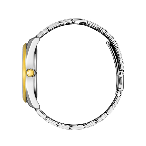 • Eco-drive • Quartz Collection • Luminous Hands • Screw-Back Case • Date Movement: Japanese quartz movement Case: Stainless Steel Case color: Silver and Gold Case size: 42 mm Dial color: Blue Band materials: Stainless Steel Band color: Silver and Gold