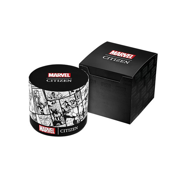 • Eco-drive • Marvel Watch Collection • Luminous Hands and Markers • Date Movement: Japanese quartz movement Case: Stainless Steel Case color: Black Case size: 47mm Dial color: Black Band materials: Silicone Band color: Black
