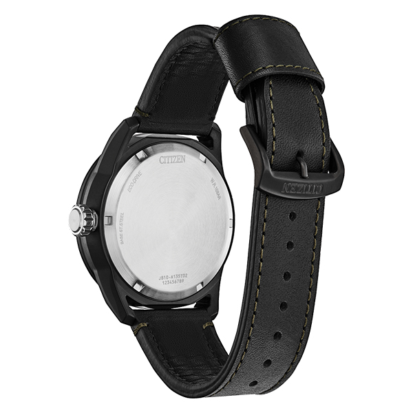 MODEL: AW1735-03XCITIZEN WATCHES Avion Weekender. A vintage look from a bygone era, combined with modern technology, make the men’s Avion Weekender timepiece from CITIZEN WATCHES the watch to wear. This traditionally styled watch features a black stainless-steel case that holds a green three-hand dial with date. The black leather strap with buckle completes the nostalgic look. This Eco-Drive watch is powered by any light source eliminating the need for batteries and is also water resistant up to 100 metres. Celebrate enduring character and contemporary style with the Avion Weekender. Case Diameter 45 mm.