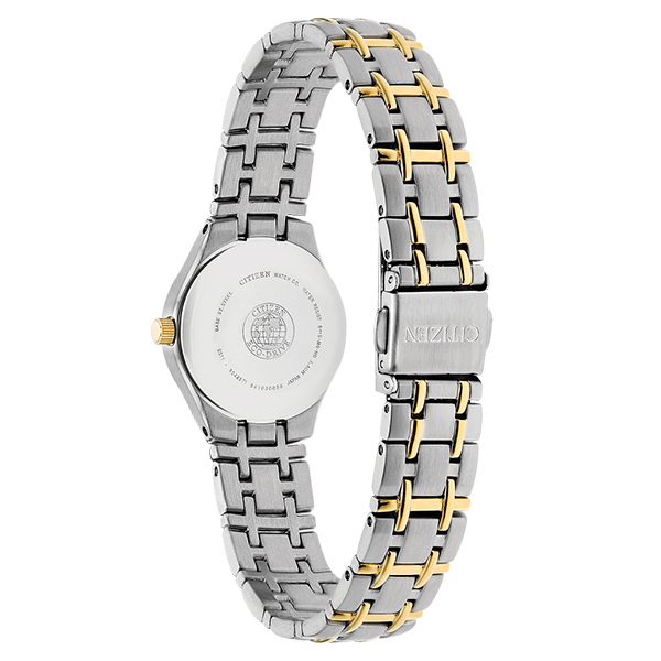 MODEL: EW1264-50ACITIZEN WATCHES CORSO This timepiece from CITIZEN WATCHES’s Corso collection is the epitome of versatility, making it perfect for any occasion. This is a 3-hand model with luminous hour and minute hands, date, and a clean white dial set in a two-tone stainless steel case and bracelet. Case Diameter 25mm. Water Resistance 30M. Fold Over Clasp with Push Button.