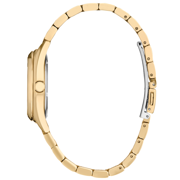 MODEL: EW2702-59DCITIZEN WATCHES Carson When sporty style meets luxury, you get this latest stunner from CITIZEN WATCHES. Joining ready-for-anything wearability with feminine elegance, this time-and-date timepiece is the ultimate day-to-evening watch to wear. The gold-tone stainless steel case measures 33mm in diameter and is presented on a matching, 3-link stainless steel bracelet for a sleek, versatile wear on the wrist. The radiant white mother-of-pearl dial is characterized by its highly legible style and diamond accents, elevating the sporty wearer one step further. A water resistance up to 100 metres helps the dynamic watch maintain a host of functionality without compromising its alluring appearance. Powered by CITIZEN WATCHESs proprietary Eco-Drive technology to provide light-powered vitality continuously and sustainably without ever needing a battery. Case Diameter 33mm. Water Resistance 100M. Fold Over Clasp.