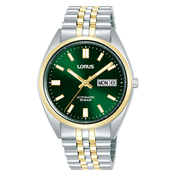 MODEL: RL430CLorus men automatic watch using quartz movement with green dial. stainless steel case 39 mm with screw case back, stainless steel wrap band. Functions with lumbrite display and 100m water resistance.