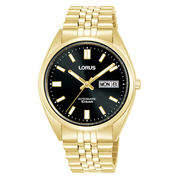 MODEL: RL434CLorus men automatic watch using quartz movement with black dial. stainless steel case 39 mm with screw case back, stainless steel wrap band. Functions with lumbrite display and 100m water resistance.
