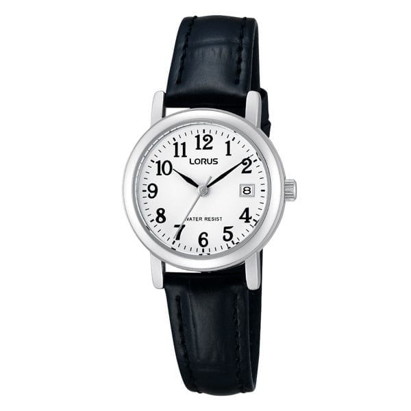 MODEL: RH765ALorus classic women’s watch features: stainless steel case, genuine leather strap, Japanese quartz movement with date, water resistant to 30 meter / 100 ft.