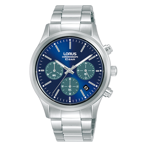 MODEL: RT331LLorus men chronograph with quartz movement, 43mm stainless steel case and bracelet, with Lumbrite display and 100m water resistance.