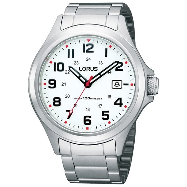 * Lorus Stainless Steel Watch * LumiBrite hands and markers * solid Stainless Steel case and bracelet * Japanese quartz Movement with date * Water resistant to 100 meter / 330 ft. * movement: Japanese quartz Movement with date * water resistant: 100 meters / 330 ft. * warranty: 2 years * unit size: 42 mm * unit weight: * case material: Stainless Steel * case color: Silver * band material: Stainless Steel * band color: Silver