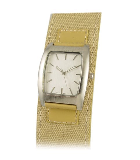 * Unisex outdoor watch with brush silver casing * Heavy duty oversized leather strap * Tank style silver tone face with raised index * Japanese quartz Movement * Water resistant construction * Gift box included Case material / Color: Metal / Silver Band material / Color: Leather Strap / Beige Dial color: Silver dial with silver raised index Hands: 3 hands Case size: 31mm x 40mm Net Weight: 47gm Water Resistance: 10M Warranty: 3 years
