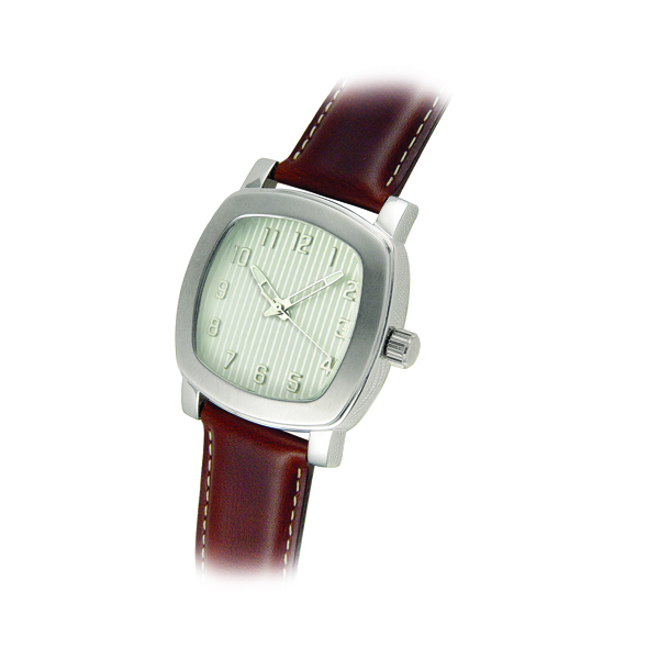 * Brush silver finish square solid brass casing * Unique strip face design * Engrave-able stainless steel case back * Japanese quartz Movement * Water resistance construction * Gift box included Case material / Color: Brass / Silver Band material / Color: Leather strap / Brown Dial color: White strip dial with silver raised index Hands: 3 hands Case size: 35mm x 35mm Net Weight: 62gm Water Resistance: 10M Warranty: 3 years