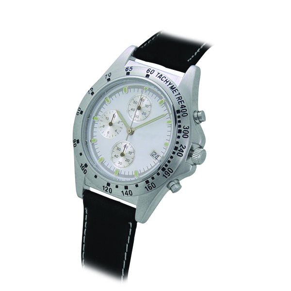 MODEL: 834-00SLDon’t miss out on this sporty brass case Tachymeter unisex watch. The Matsuda Tachymeter features a 37mm brushed silver finish brass case, tachymeter marking on bezel, luminous hands and markers, genuine leather strap, Japanese chronograph quartz movement with date, and water resistance construction.