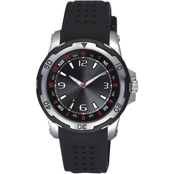 * Satin silver finished metal case with rubber accent * Luminous sweeping hands & index * Rotating bezel * Engrave-able stainless steel case back * Japanese quartz Movement * Water resistance construction * Gift box included Case materials / color: Metal / Silver Case size: 47mm x 47mm Strap material / color: Two layer nuddy flex strap / Black Functions: Japanese Quartz Movement Water resistance: 10M Warranty: 3 year Warranty Gift box: BX-033 Net product weight: 91gm Gross weight with box: 172gm Brand: Matsuda