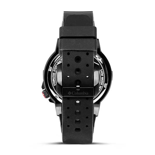 analog watch movement. The custom designed water-resistant silicone strap is designed for durability and rugged conditions. Featuring a sand-blasted finish dial texture and added function of a day-date calendar, the Peak Patrol takes timing to the extreme.