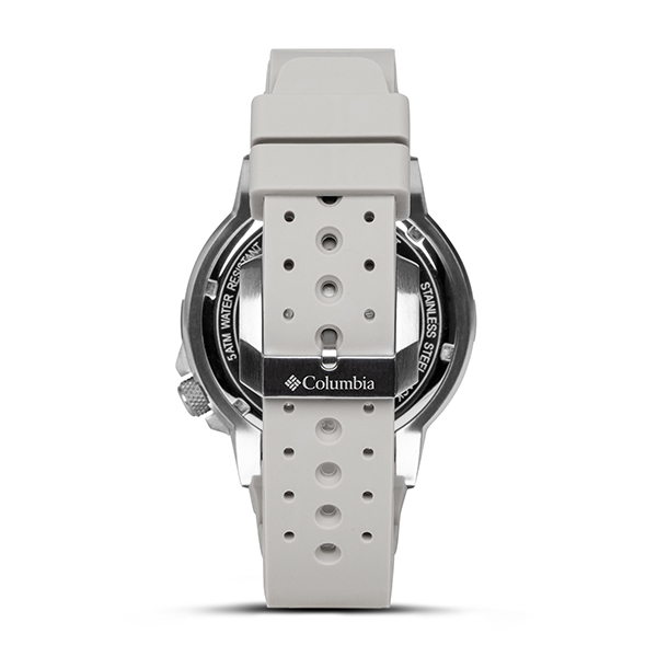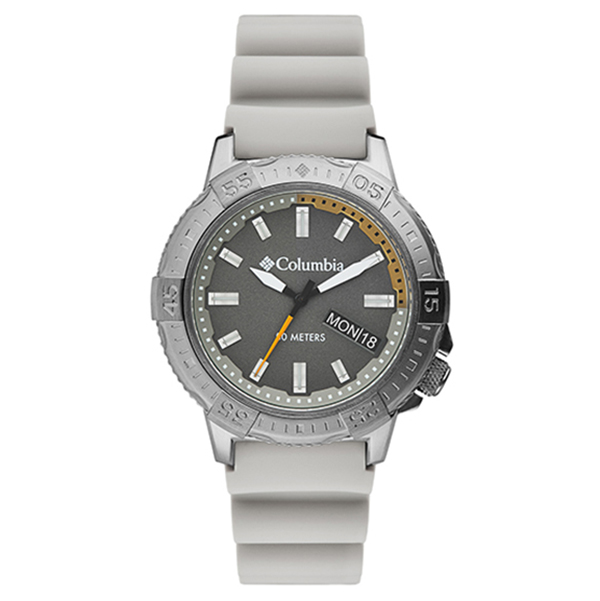 MODEL: CSC03-004The Peak Patrol collection is an edgy renegade in wrist wear and timing gear. A chiseled bezel with peaks and valleys forged into the steel casing display numeral markings that add a functional timer when paired with the analog watch movement. The custom designed water-resistant silicone strap is designed for durability and rugged conditions. Featuring a sand-blasted finish dial texture and added function of a day-date calendar, the Peak Patrol takes timing to the extreme.